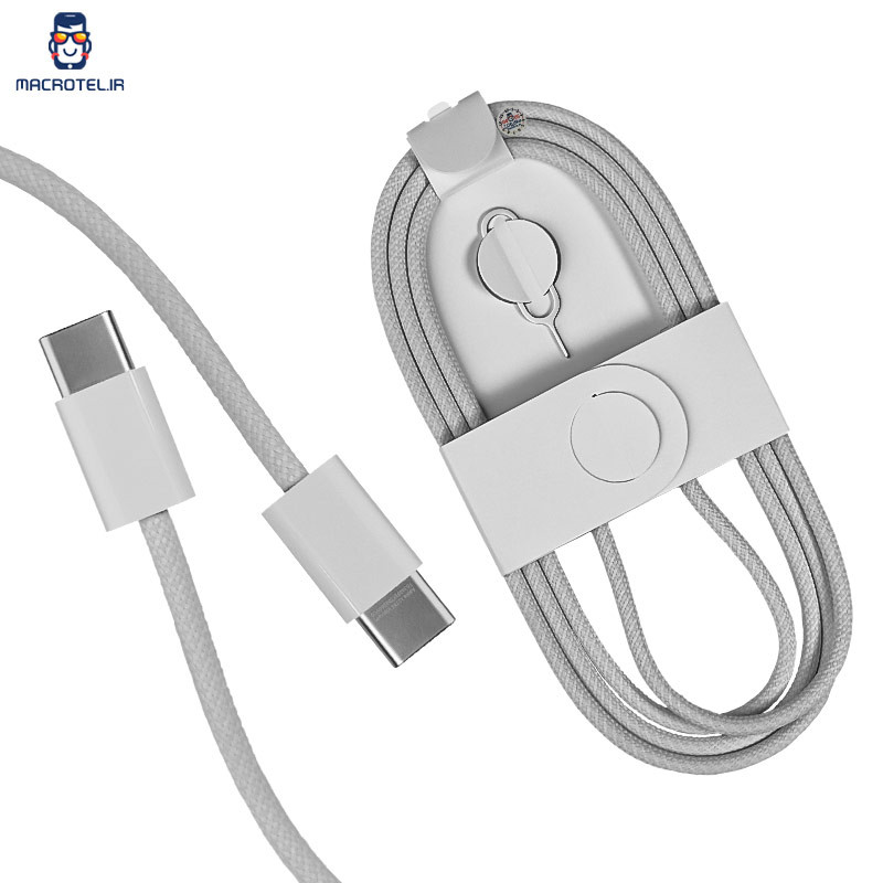 شارژر اصلی آیفون 17 پرو مکس با خروجیهای 20 وات، 30 وات و 40 وات به همراه کابل دو سر تایپسی کنفی.